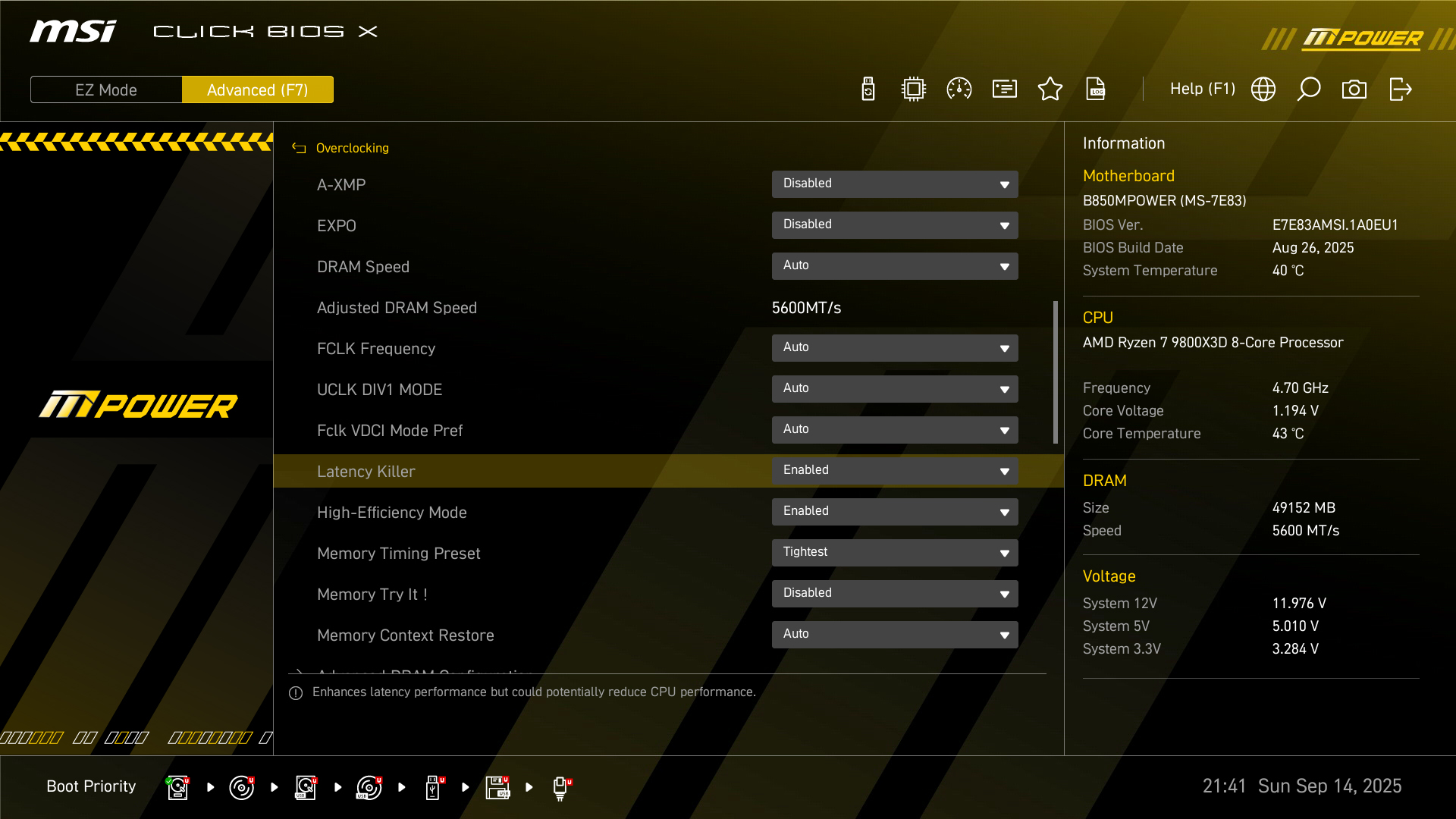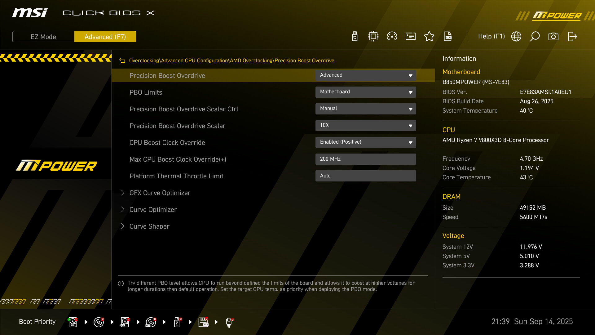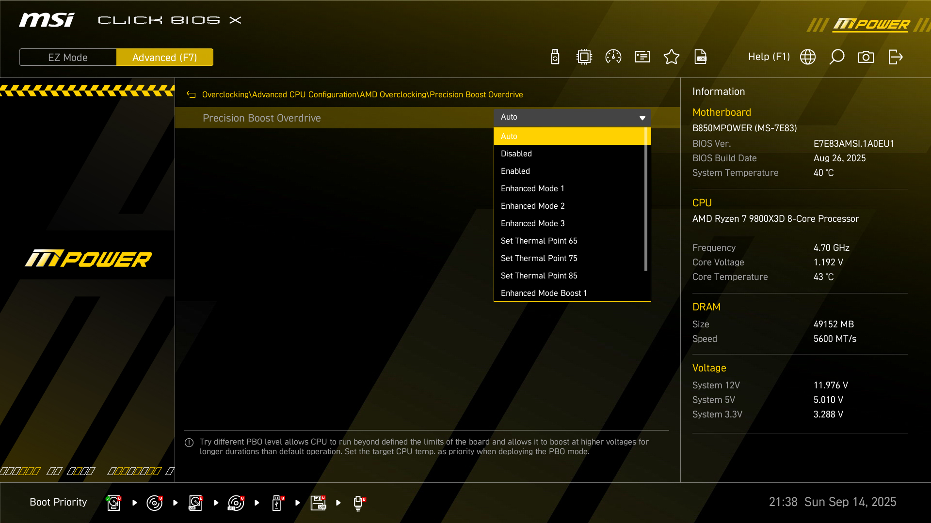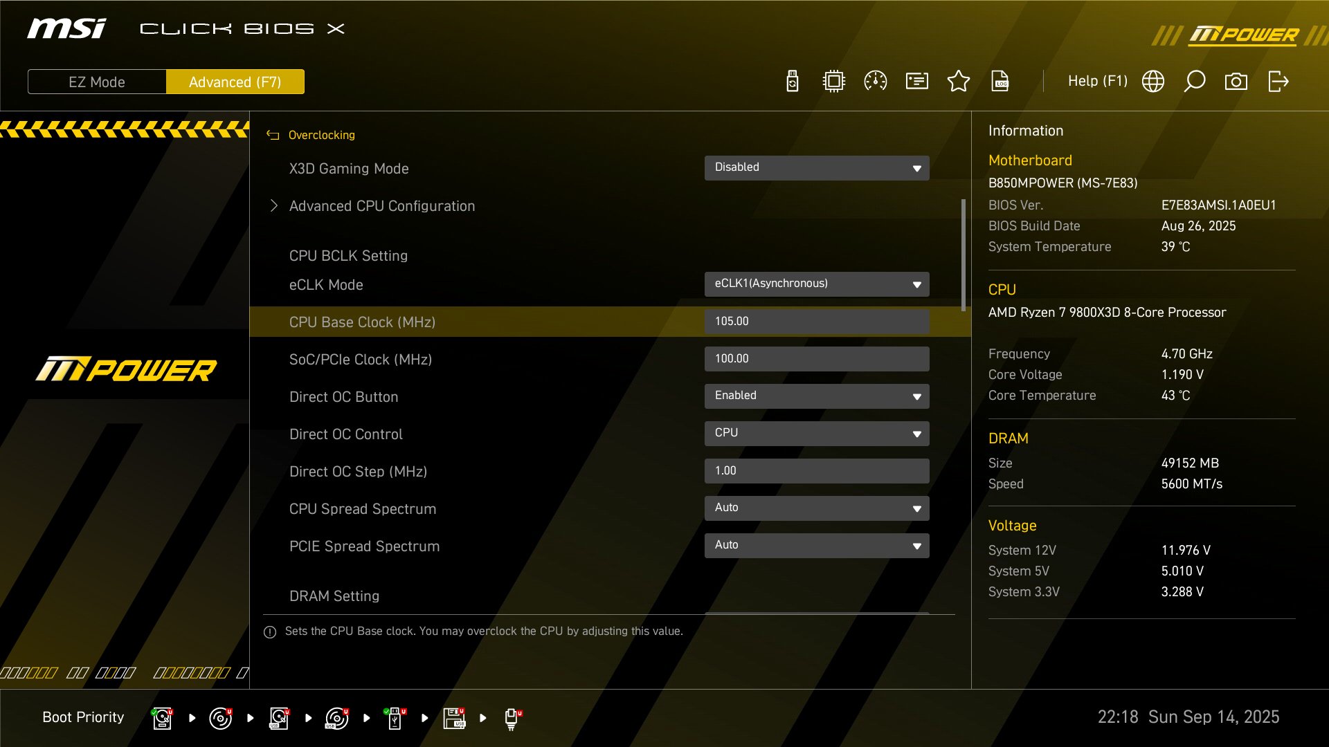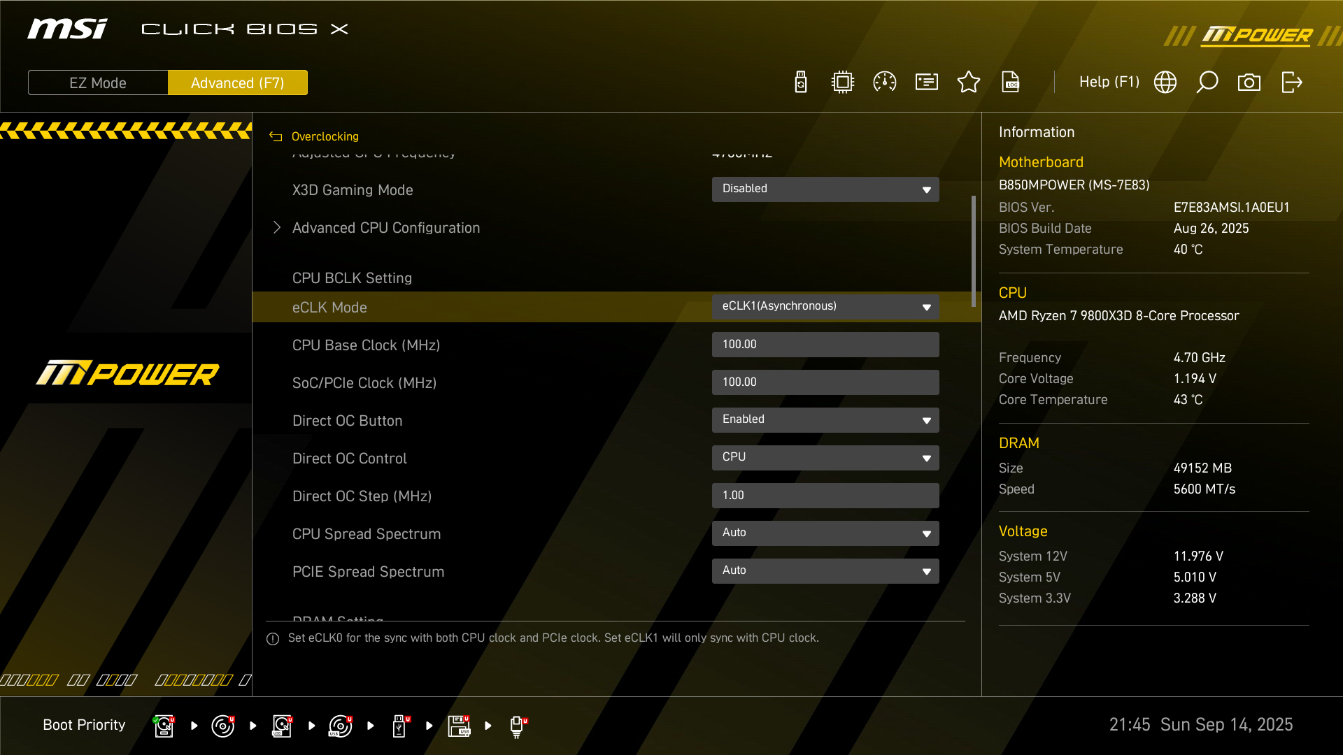 微星 B850MPOWER 主板带有内置独立的BCLK ClockGen RC26008,支持多种CPU调整外频,提供更高的性能输出。