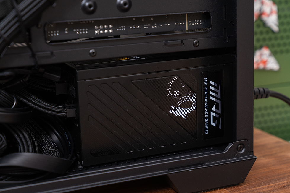 同时为了保证整套系统的稳定供能,选用微星MPG A1000GS PCIE5电源,遵循ATX 31 与 PCIE 5.0 标准,通过80PLUS金牌、Cybenetics Gold、PPLP Gold认证,采用100%全日系105℃耐高温电容。电源规格150*150*86mm,并为用户提供了10年的保修政策。