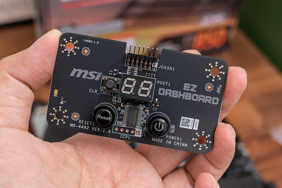 作为一款定位于超频性能的主板,微星B850M POWER特别为超频爱好者配备了独立外置的简易控制模块(EZ Dashboard)。该模块集成有DEBUG指示灯、CMOS清除按键、重启及电源开关按键,有效简化了复杂的超频操作流程。