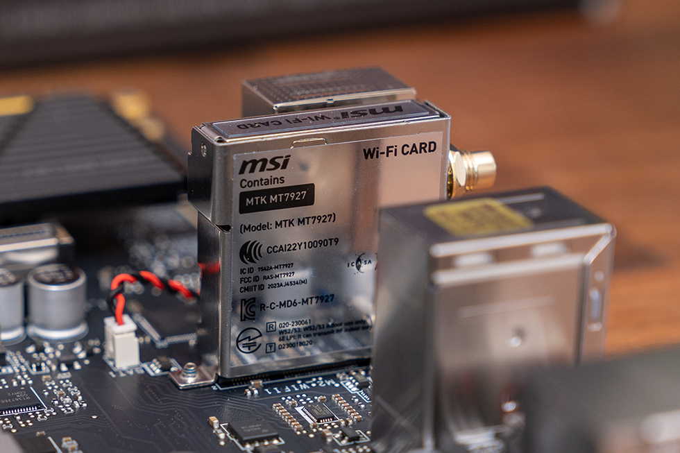 网络部分,有线网络部分由realtek的RTL8126提供的板载 5G 有线网口。无线方面配备了新一代 满血WiFi 7 芯片,来自联发科的MT7927,加入6 GHz频段、支持4096-QAM和320 MHz 超频宽,最大带宽提升至5.8Gbps,是WiFi6/6E的2.4倍,同时支持 BT 5.4。