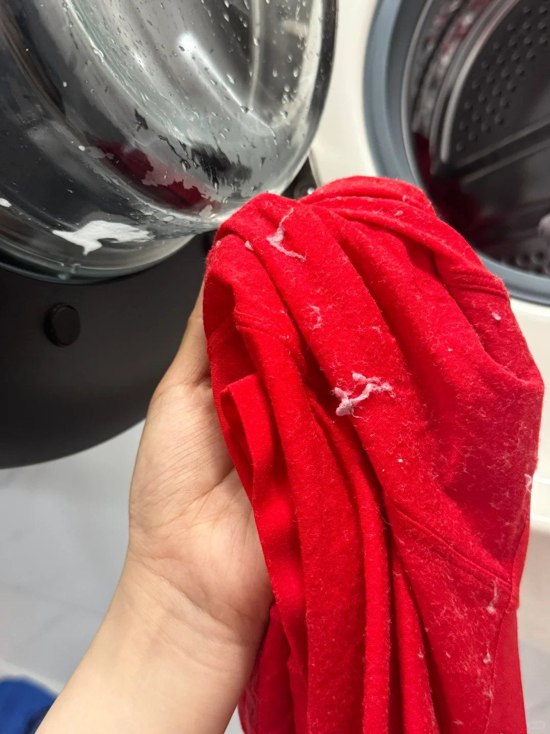 如,烘完的衣服到处都是褶皱,必须熨烫才能上身,而且还会有毛发、毛球、头发纸屑等东西残留在衣物和机器内,增加洗烘一体机的日常使用和维护成本。
