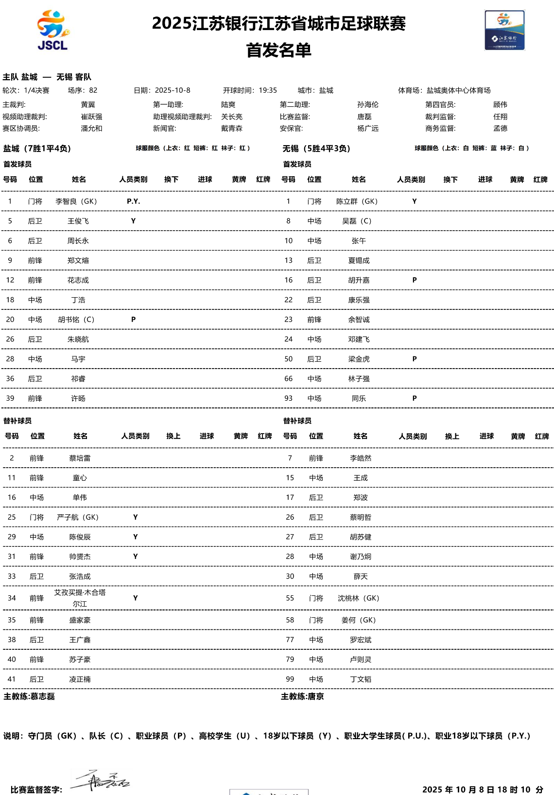 苏超(2025江苏省城市足球联赛)8强赛最后一场,盐城vs无锡,慕志磊教练回归,这本是盐城复仇的大好机会。而结果,盐城又一次输给了无锡,遭无锡双杀,文中将对盐城两次人员部署作对比。此外,据悉,被无锡进一个球,场上球迷就少了一部分,苏超盐城球迷提前离场情有可原?