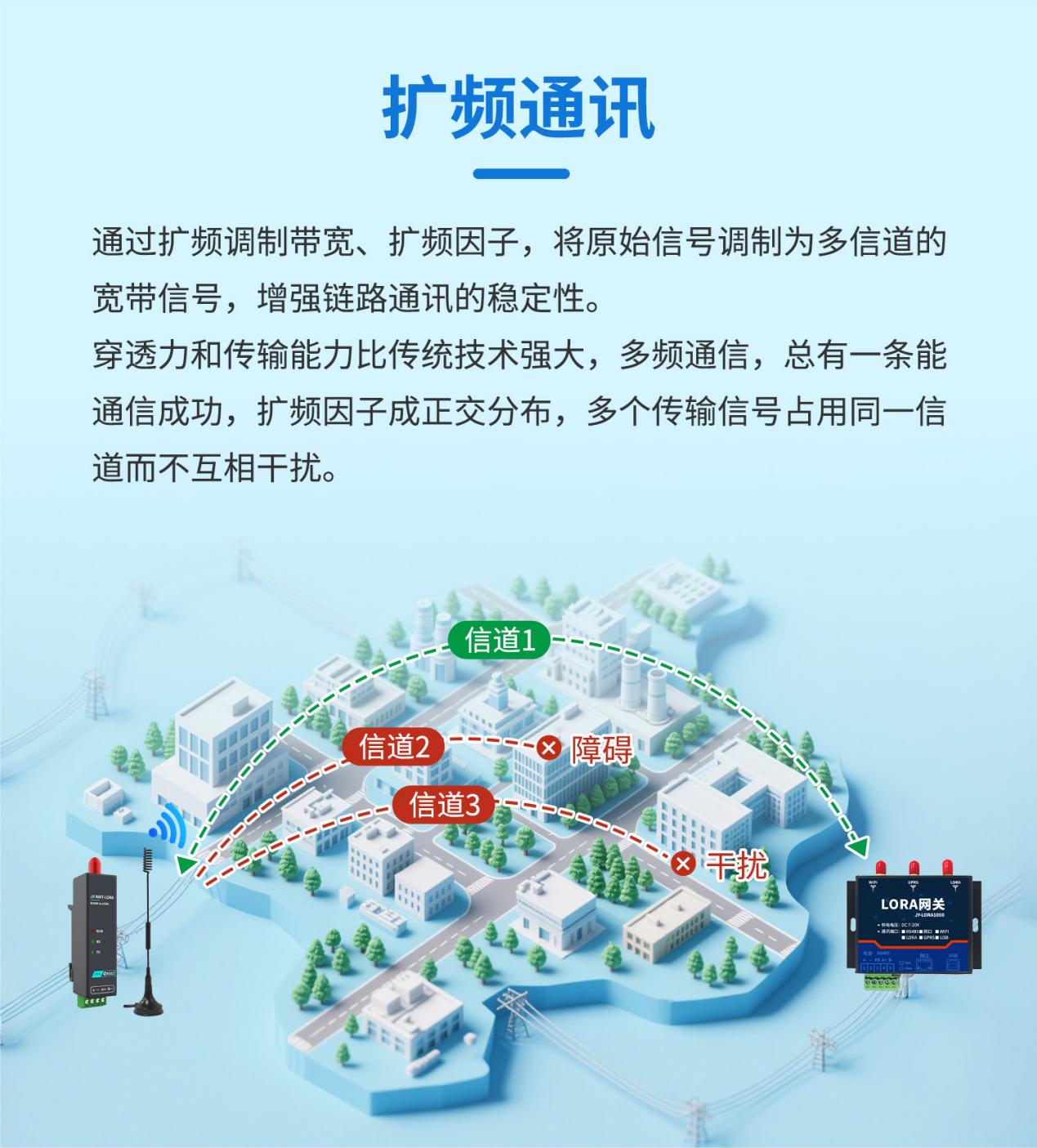 普通城区/工业园区下为800米 - 2公里,存在楼房、树木等遮挡物,信号会衰减。稳定传输距离在此范围内。