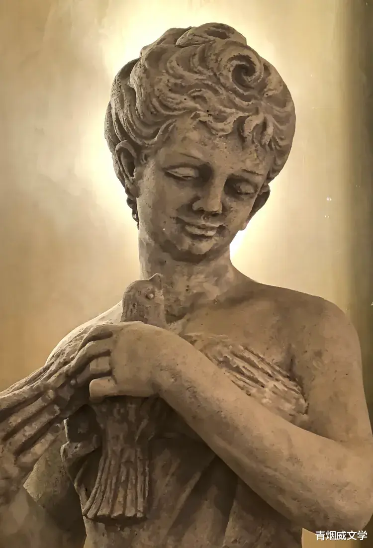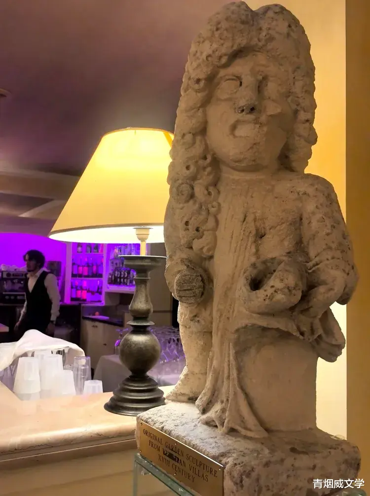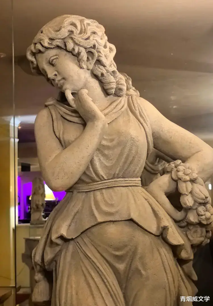 雕像与酒柜静静伫立,诉说着时间的沉淀。那些石雕人物或沉思、或轻抚小鸟,每一道刻痕都仿佛在低语,讲述着属于它们的时代。