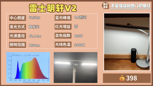 护眼灯排名前十的品牌有哪些?雷士明轩V2护眼台灯采用42.1cm的超大直径发光面,通过直下式发光方式,照明范围可达180cm,适合大桌面或双人使用场景。这款台灯的显色指数高达Ra98,能精准还原物体真实色彩,还配备了配备3800K固定暖白光,光线柔和舒适。功能上支持智能光感、睡眠夜灯和定时休息,使用较为贴心。