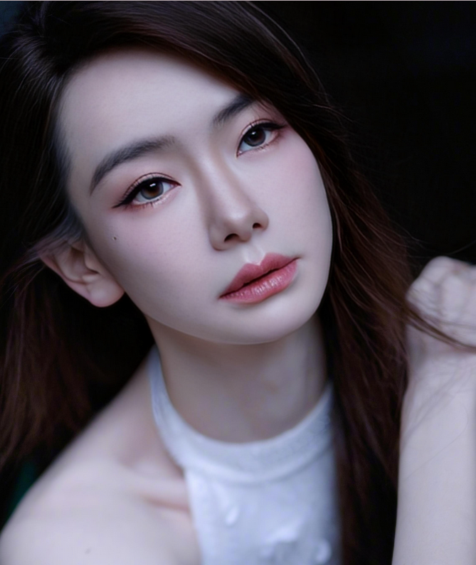高挺鼻梁与饱满嘴唇相得益彰,微笑时嘴角自然上扬,完美融合甜美与性感。