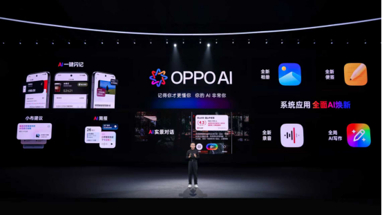 同时,OPPOAI也为系统应用赋能全新体验。AI录音摘要功能不仅支持实时分角色转写,还能进行AI摘要,轻松摘出好文案;全新的系统级全局AI写作支持更多风格化写作以及PPT与脑图的生成,成为真正的生产力神器。此外,便签全新块编辑、AI人像补光等功能,让高效无处不在。