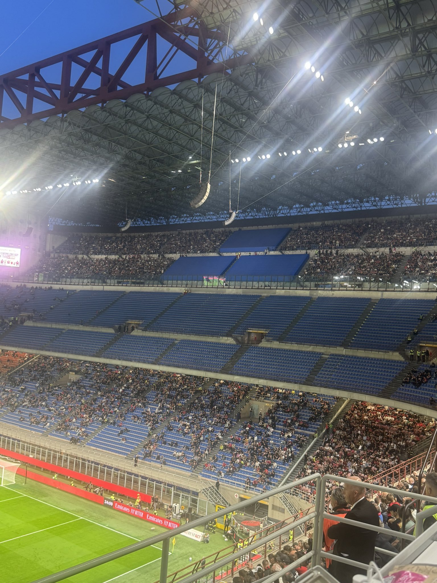 最后一轮对蒙扎的比赛中,圣西罗出现大片空荡的看台。米兰球迷通过这种方式向管理层表达不满。