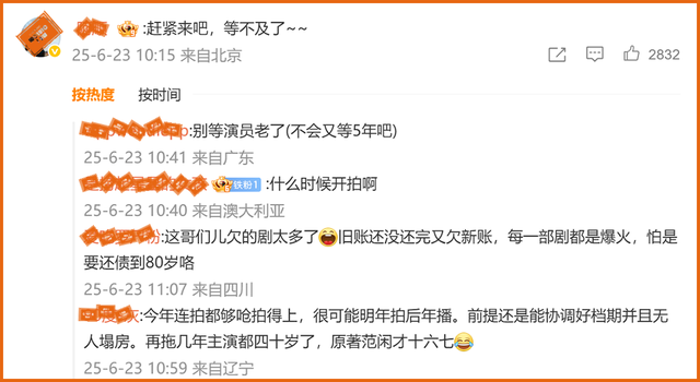 这不是危言耸听,现在已经有观众担心剧还没拍完,演员就变老了。