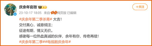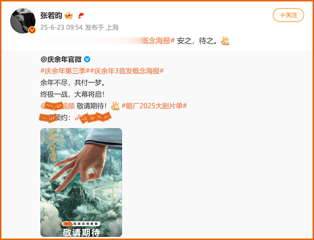 6月23日,“庆余年官微”发布了《庆余年3》的首张概念海报,这部大IP剧的第三部终于有了消息。