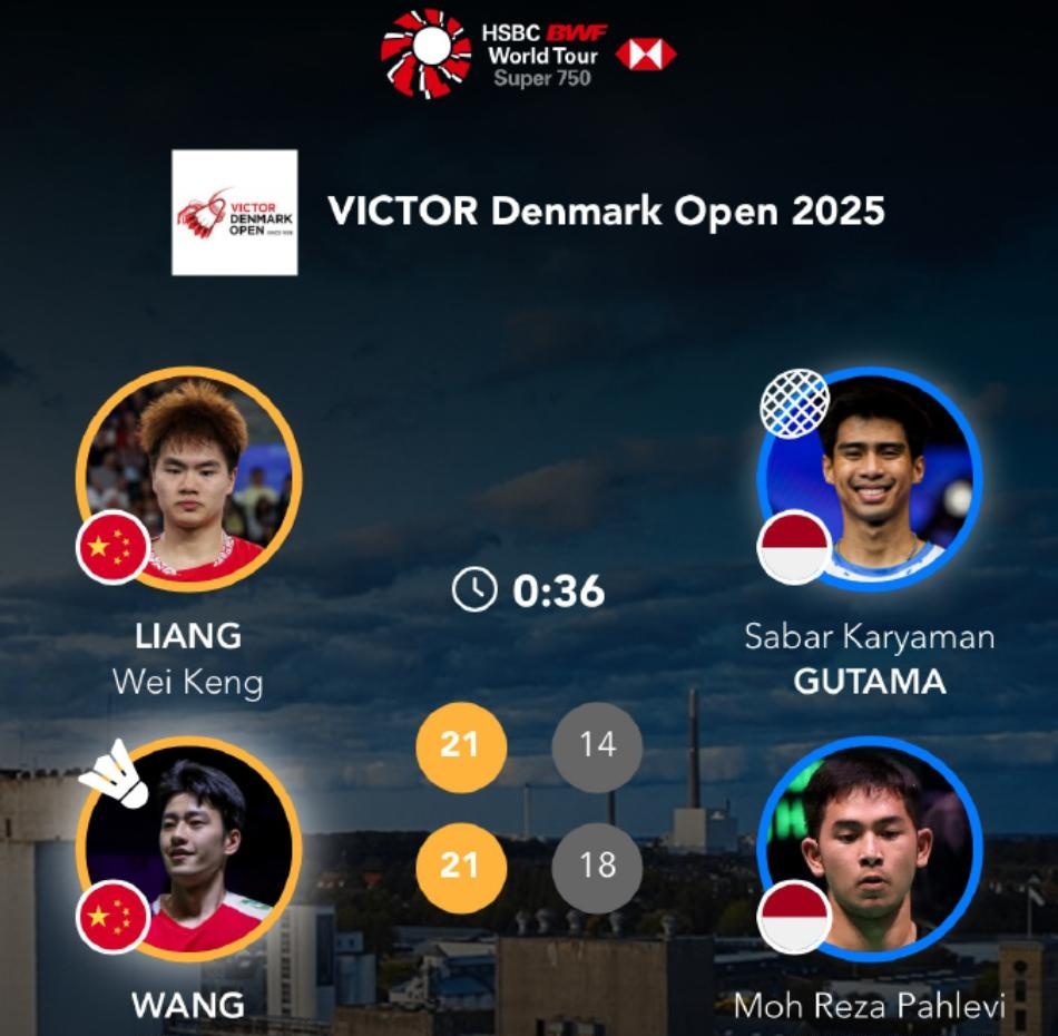 首局比赛中,印尼组合开局便打出9-4的领先优势。梁王组合迅速调整,连得12分反超比分,最终以21-14先下一城。