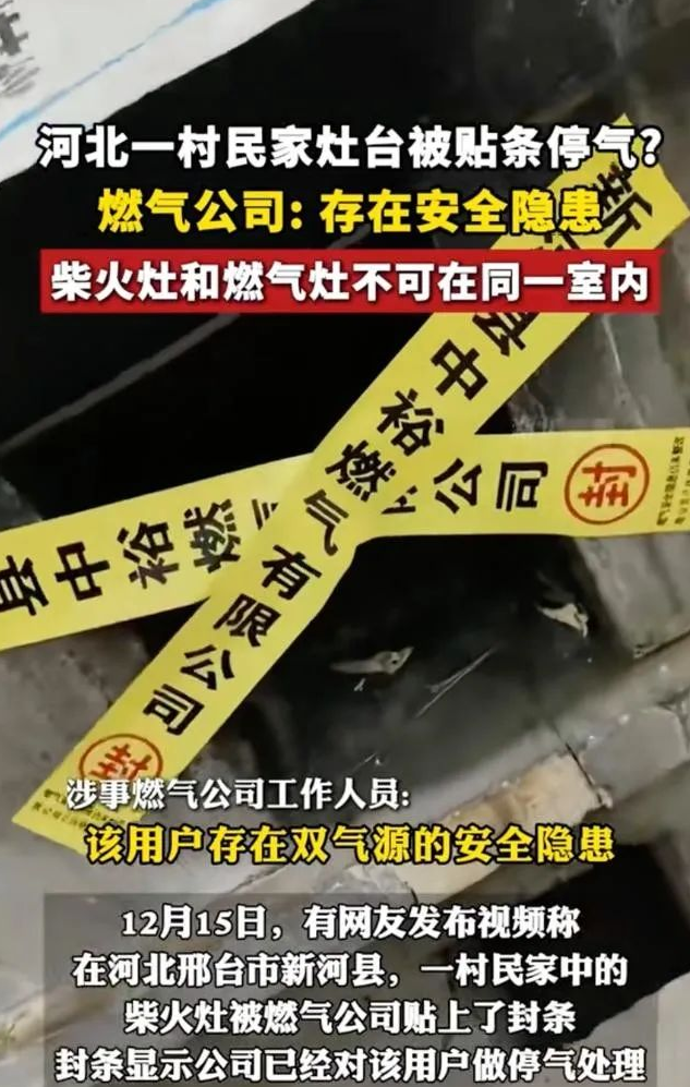 河北邢台市新河县,一户村民家里的柴火灶,竟然被当地的燃气公司给贴上了封条。