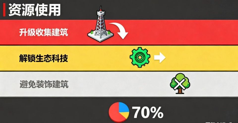 2. 第二优先级:解锁 “生态保护” 基础科技当生态积分积累到 50 点时,优先解锁 “初级资源再生” 科技(消耗 50 点生态积分),解锁后所有资源点的刷新速度提升 20%,相当于 “被动增加资源产量”,长期收益远超短期消耗。