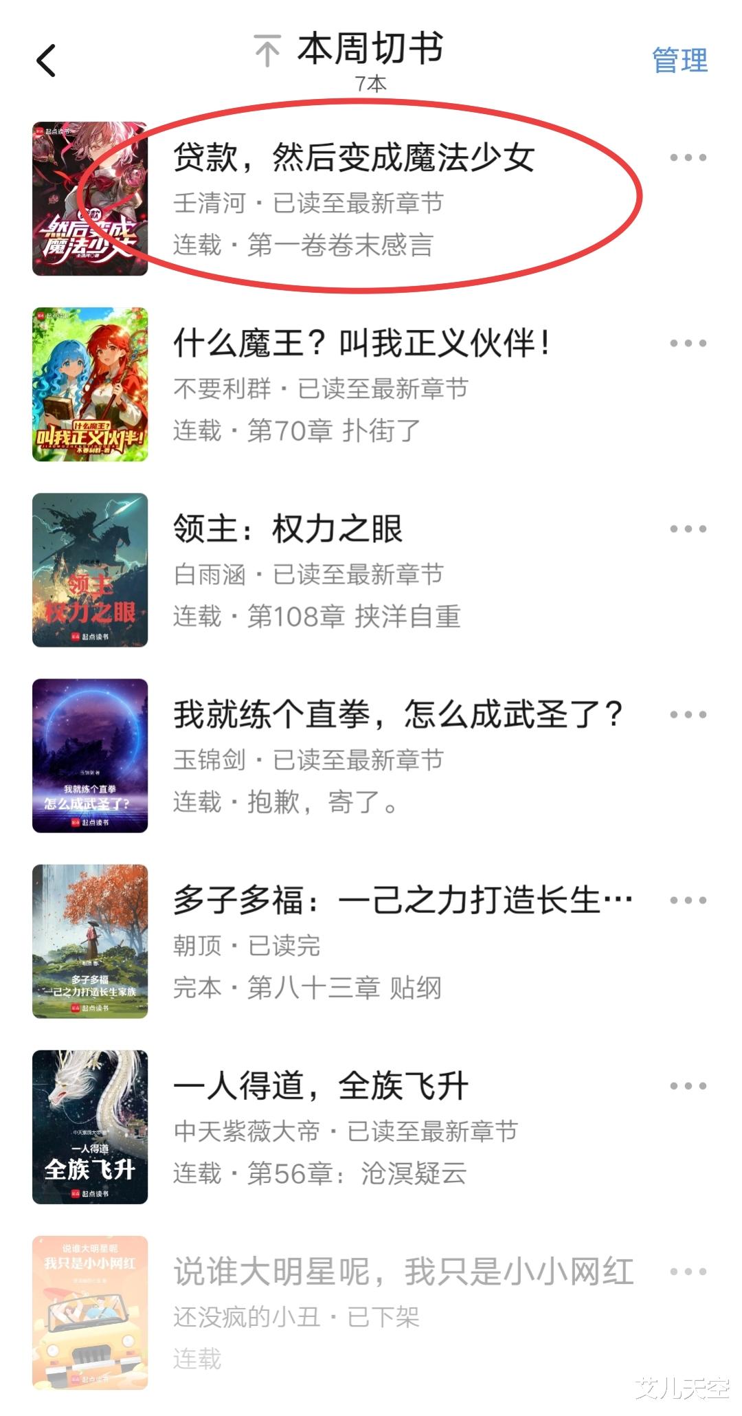 另外看到《贷款,然后变成魔法少女》那本魔法少女今天选择切书了,负面评论太多,作者没抗住。均订一千五的成绩,作者之前已经完成过一本《考研,然后变成魔法少女》。