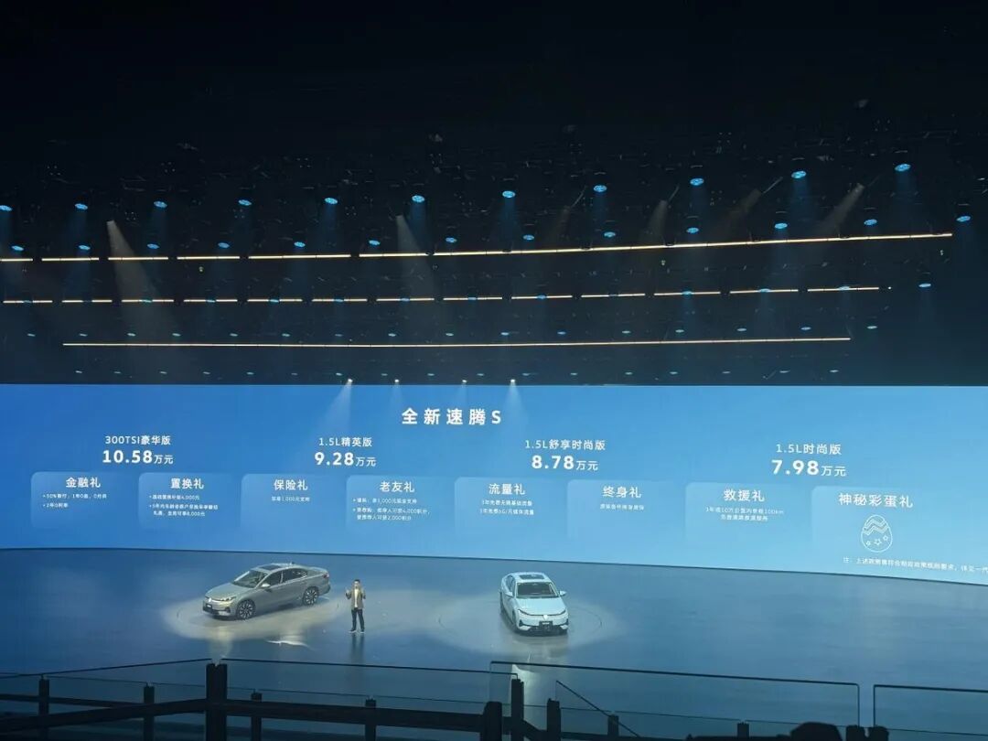 本次发布会最具冲击力的,莫过于全新速腾S的上市,新车起售价仅7.98万,直接杀入紧凑型家轿核心战场,把德系A+级家轿的入门价格拉到10万以内,对合资、自主家轿市场形成了明显的冲击,重新定义了该价位段的价值标杆。