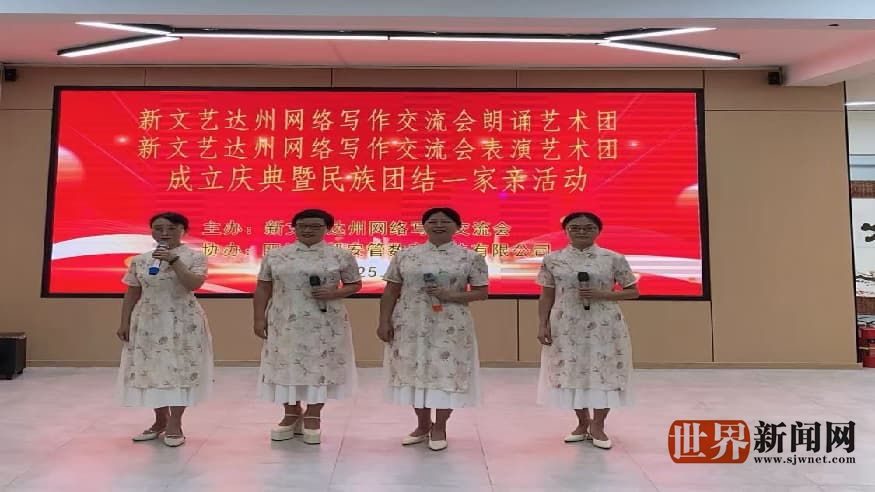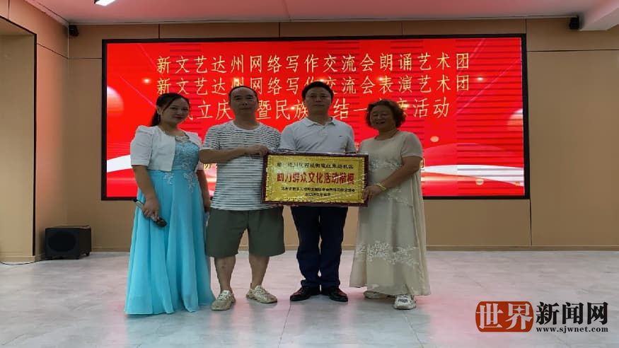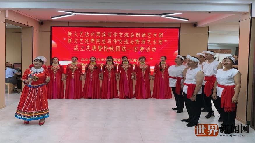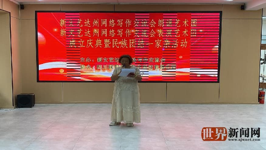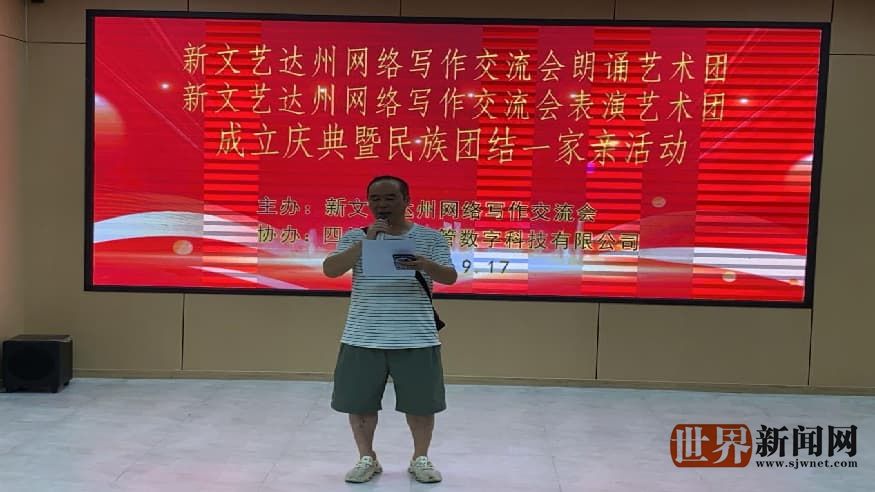 9月17日上午在红旗路社区正式成立新文艺达州网络写作交流会朗诵艺术团、新文艺达州网络写作交流会表演艺术团。笔墨书写时代,声音传递真情,舞台演绎人生。新文艺达州网络写作交流会两个团队的诞生,为达州的新文艺事业注入了鲜活的力量。新文艺达州网络写作交流会,将汇聚才思,以灵动的文字勾勒世间万象,在网络空间播撒思想的种子;朗诵艺术团,将以深情的嗓音诠释文字的魅力,让无声的篇章化为动人的旋律,直抵人心;演艺艺术团,则将用生动的表演展现生活的波澜壮阔,在舞台上绽放艺术的光华。此次新文艺达州网络写作交流会朗诵团、表演团成立庆典塈民族团结一家亲活动,参加的单位有新文艺达州网络写作交流会、四川联帮安管数字科技有限公司和红旗路社区。