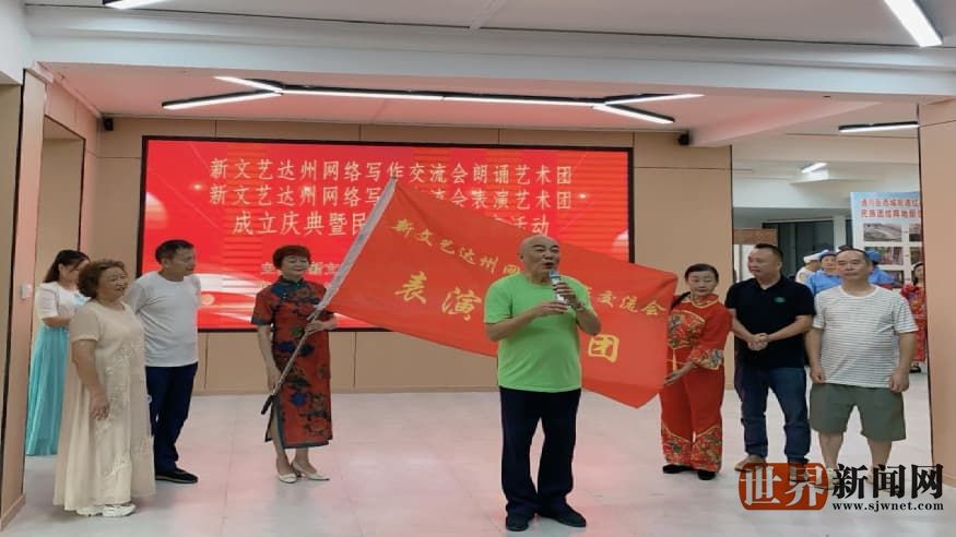 新文艺达州网络文学交流会授旗:新文艺达州网络写作交流会表演艺术团接旗(团长杨建国发言)