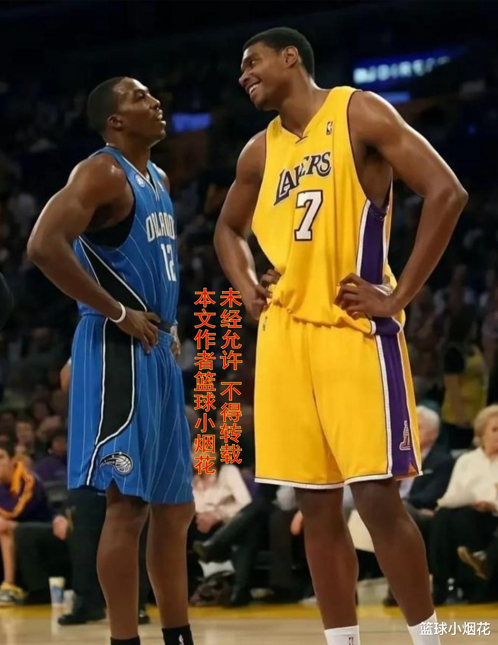 同年进入湖人的霍华德,也是湖人下了血本才弄回来的,湖人为了得到这位联盟第一中锋,拉着魔术、76人和掘金搞出了一个轰轰烈烈的四方大交易,湖人送出了联盟第二中锋拜纳姆,四名还不错的角色球员,外加一个首轮一个次轮,这才得到了霍华德。