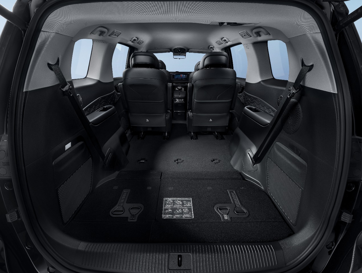魔术大空间,同级多项第一。大家庭出游,每个人都需携带自身行李,星海V9越享系列长宽高5230*1920*1820mm,轴距3018mm,车内空间有效利用率高达85.2%,不仅车内实用面积达到5.54m²,而且灵活多变,完全满足全家人的置物需求。同级唯一的第三排4/6下沉放平设计,坐满7人,后备箱仍有同级第一的593L,7人份行李箱和背包轻松容纳,如果双人出行,将第三排折叠,后备箱依然同级最大,足足2616L,秒变1.7m大床房,既可小憩,也装得下帐篷、睡袋等露营装备。