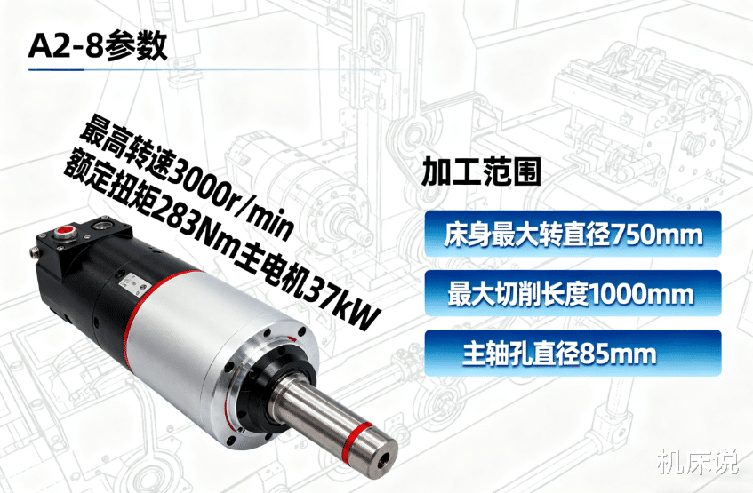 机床的加工范围令人印象深刻:床身上最大回转直径750mm,最大切削长度1000mm,标准切削直径380mm,最大切削直径500mm,满足大多数中型工件的加工需求。主轴孔直径85mm,可通过最大棒料直径75mm,为长轴类零件加工提供便利。