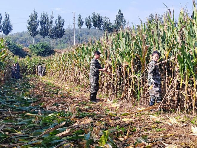 玉米田间,党员干部们挽起衣袖、戴好手套,分工明确、默契配合。有人挥镰割秆,有人俯身掰棒,有人蹲地剥壳,有人搬运秸秆,一条“人工流水线”很快运转起来。