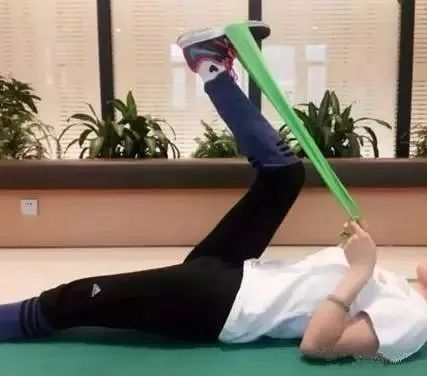 使用毛巾或弹力带绕过脚底,双手握住毛巾两端,进行膝关节屈伸运动。