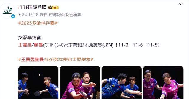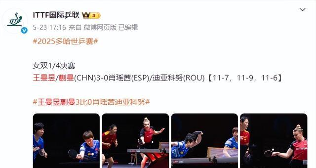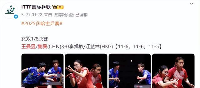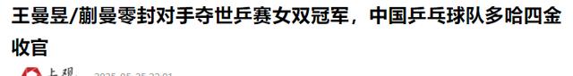 原文刊载2025-05-25上观新闻关于“王曼昱/蒯曼零封对手夺世乒赛女双冠军,中国乒乓球队多哈四金收官”