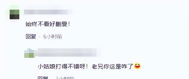 有的网友就发文表示,自己“不看好”。另一位网友看到后,就对其进行了恢复,说“小姑娘打得不错!”