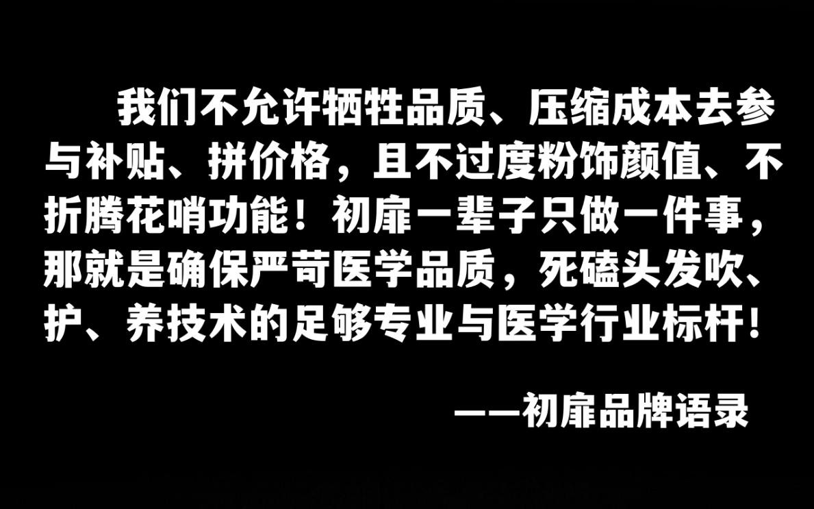 初扉10多年死磕“养发、护发”黑科技,不拼低价和噱头冗余功能,不打广告,纯靠实力和口碑,2年时间销量便突破10万+,成为新一代“小众精品”。被誉吹风机“养发鼻祖”“戴森理想平替”。初扉专为高端院线护发机构设计,针对发质受损人群。产品在欧美大受欢迎,获欧盟CE、美国FCC等十多家权威认证,在国内8次测评中,37项护发、养发指标打破记录,实力印证高端定位。
