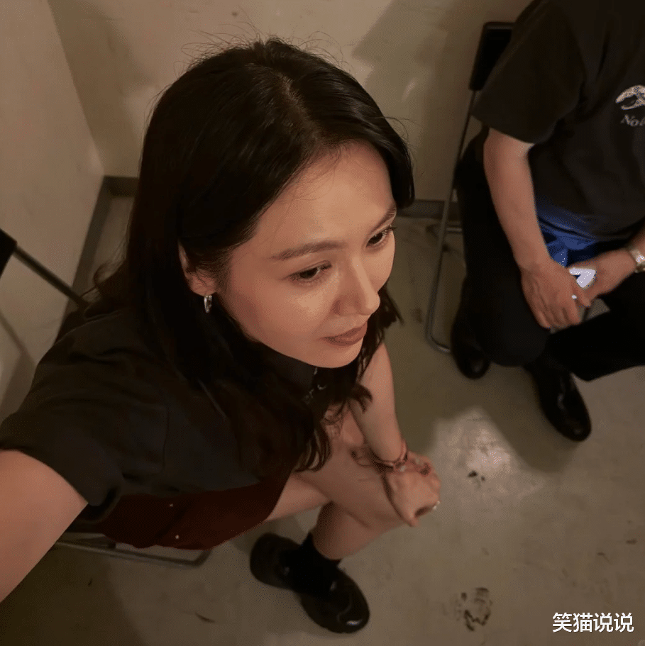 孙艺珍还晒出了她的自拍照,不过那是一张比较角度比较搞怪的照片。照片中的她坐在椅子上,拿着手机由上往下拍照,俨然是一张大头贴的照片,有点搞怪,又有点可爱。