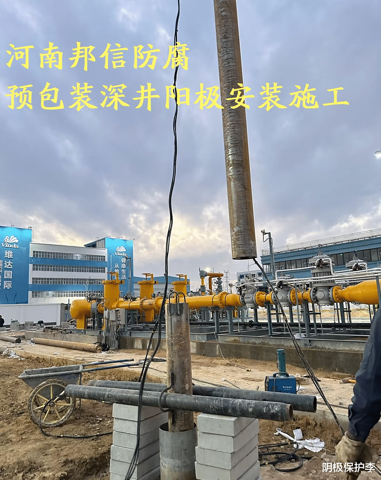 深井阳极已按设计深度安装完成,填充料(如焦炭)均匀填充,阳极引出电缆已从井内引出并做好防水密封(通常采用热缩管或防水胶密封)。