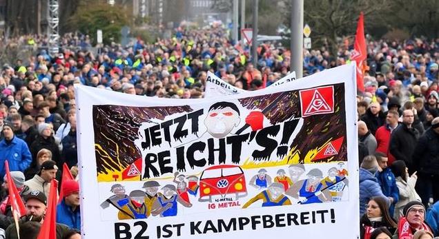 就在前不久,德国大众的九家整车和配件工厂突然爆发大罢工,高达七万多名工人罢工抗议,街头上都是群众的呼吁声。
