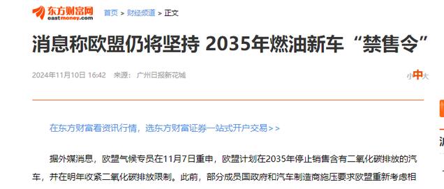 文章信源:消息称欧盟仍将坚持 2035年燃油新车“禁售令”——东方财富网