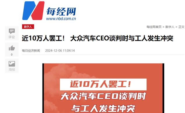 文章信源:近10万人罢工!大众汽车CEO谈判时与工人发生冲突——每日经济新闻