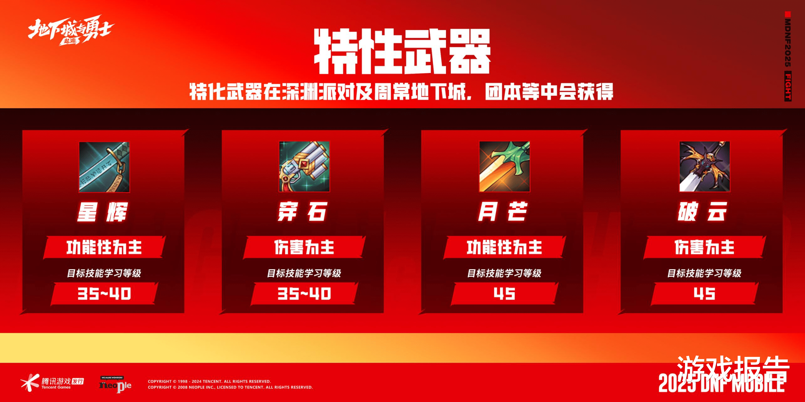 除了套装装备,特性武器也将在70级版本上线,四个方向将对应改变35~40级和45级的技能,提供功能性或伤害加强。