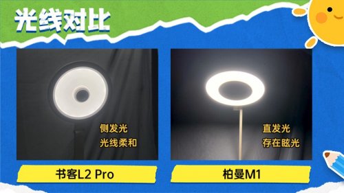不过柏曼也不是没有做法的,它设计了环形发光面,让灯珠环形排布,中介行业那个光线就可以向多个角度发散,可以在一定程度上改善单一方向照射的问题并提升光线的柔和度,但从实测图片还是可以比较明显的看出,书客的光线会更柔和一些。