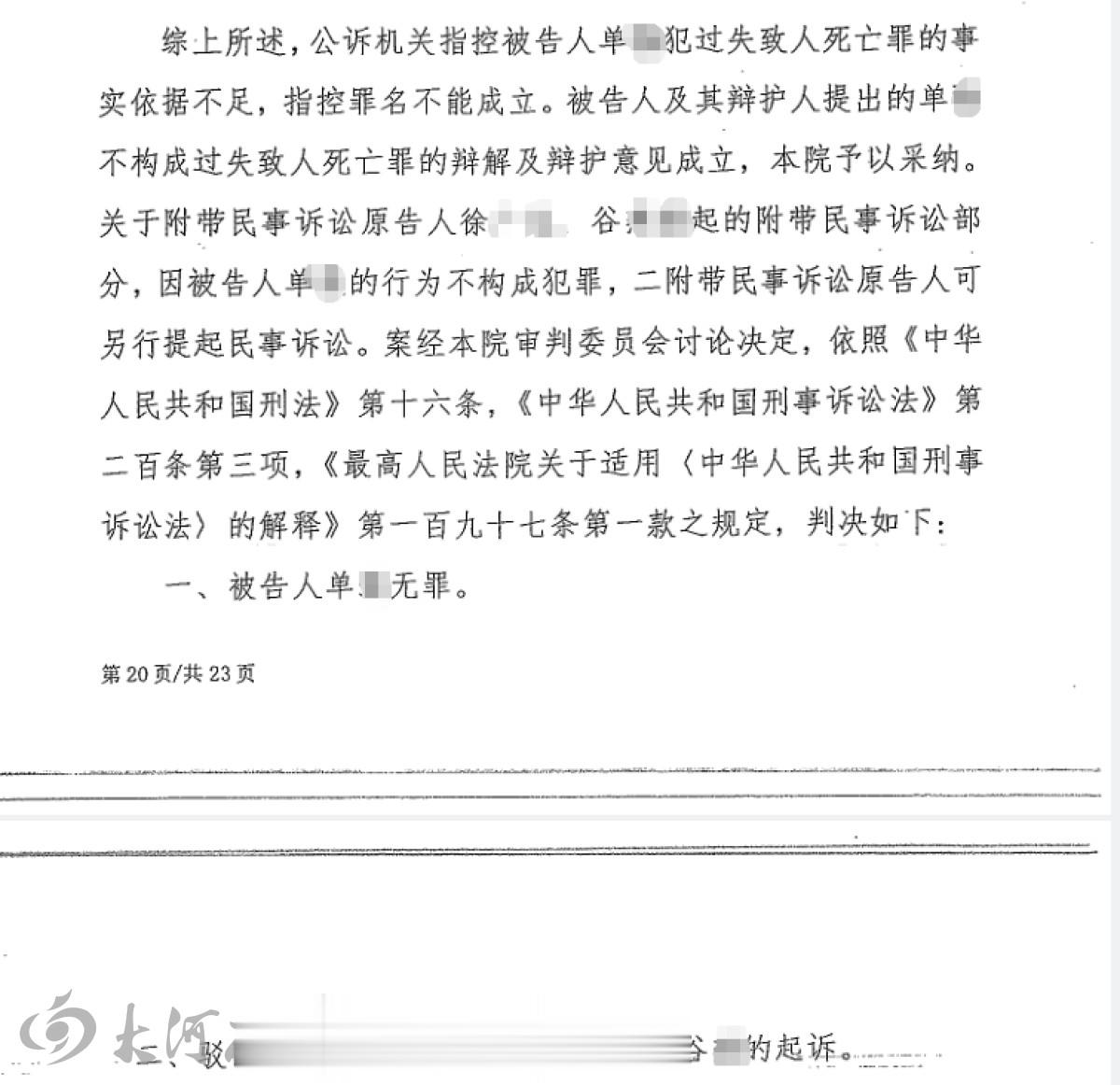10月24日,大河报《看见》记者从逝者家属处获悉,该案二审维持原判。此前,检方以过失致人死亡罪对单某提起公诉,法院一审判决单某无罪。
