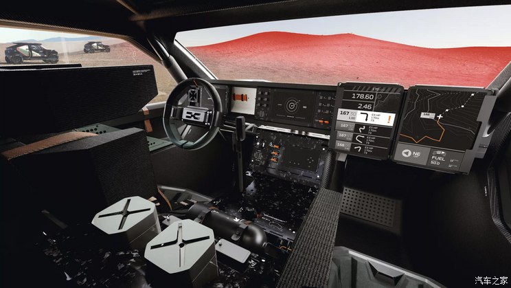 在车辆内部,已经去掉了所有的装饰,以便车辆更轻,所有的装备都与比赛相关。在达喀尔和其他集会突袭的极端条件下,热量管理是关键。为了降低车厢内的温度,Sandrider的设计师使用了与车辆碳车身面板可以尽可能隔绝红外线。