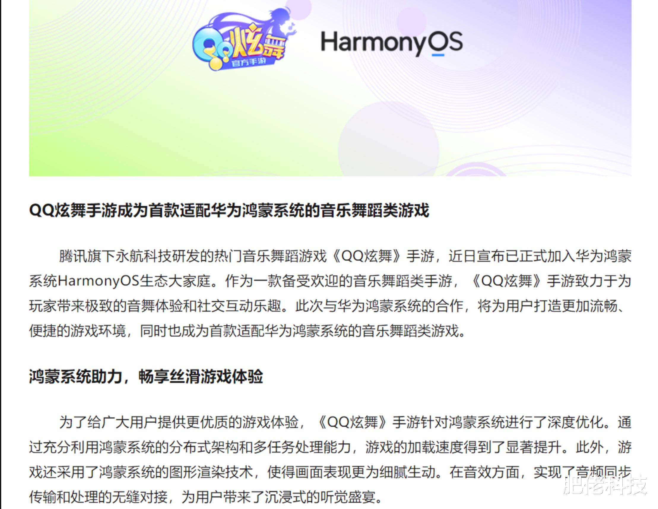 这一消息传出后,迅速引起了业内和玩家们的关注。作为腾讯系的代表之一,《QQ炫舞》手游的加入,不仅使鸿蒙生态更加多元化,也为腾讯系产品在鸿蒙生态中的布局增添了新的亮点。