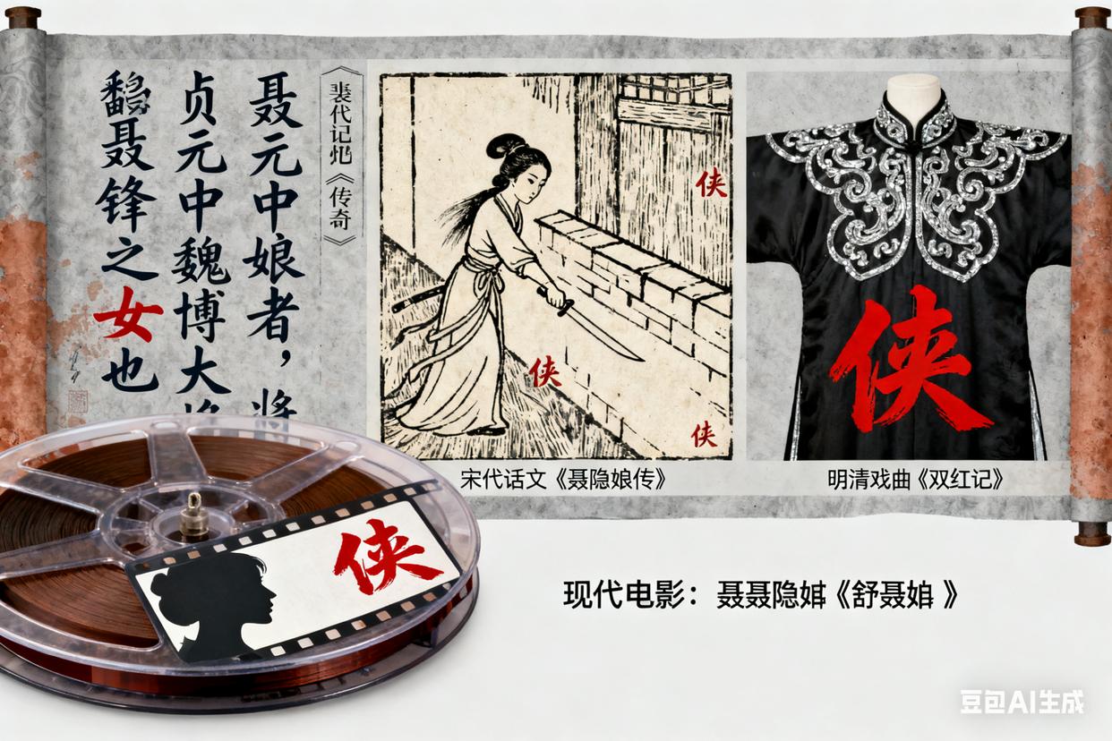 有趣的是,这样一位震撼人心的奇女子,在《旧唐书》《新唐书》等正史中竟无一字记载。正史的笔墨,多留给帝王将相、忠臣烈士,却将这位打破性别桎梏的女性,遗落在了文学的缝隙里。但文化的记忆,从来不止于史官的笔端:宋代话本将她的故事改编为《聂隐娘传》,明清戏曲《双红记》融入她的侠义元素,近现代更有电影《刺客聂隐娘》将其搬上银幕——每一次改编,都是对她形象的再丰富,也是对“女性独立力量”的再认可。她不再只是一个“刺客”,更成了“突破束缚、掌控自我”的文化符号:她可以选择为谁而战,也可以在完成任务后“翩然远逝,不知所踪”,这种“不依附男性、不困于身份”的自由,恰是中唐社会对女性想象的最大突破。