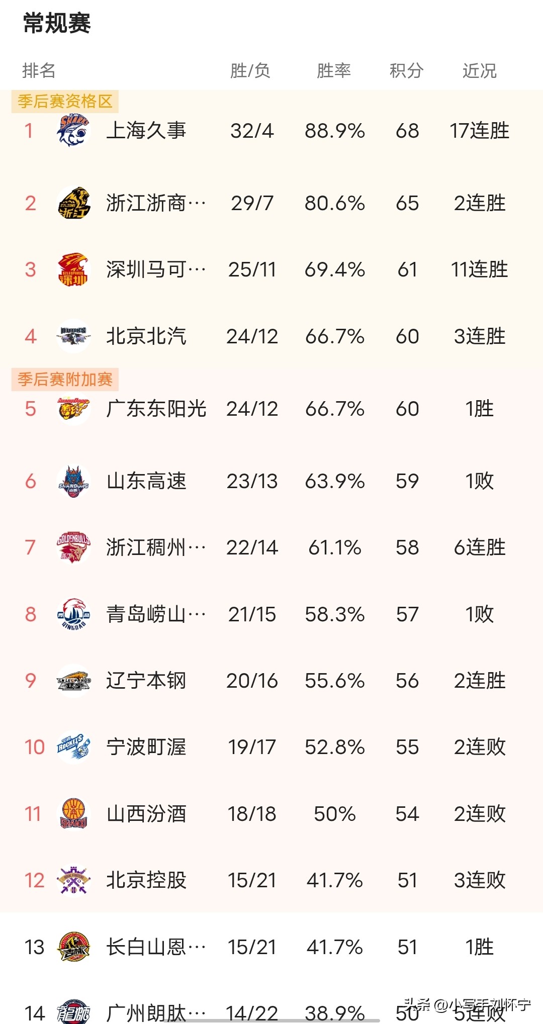 最新CBA积分榜定格!广东24胜12负跌至第5,身后山东、青岛、辽宁紧追不舍,常规赛仅剩6轮!