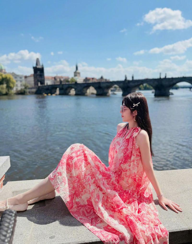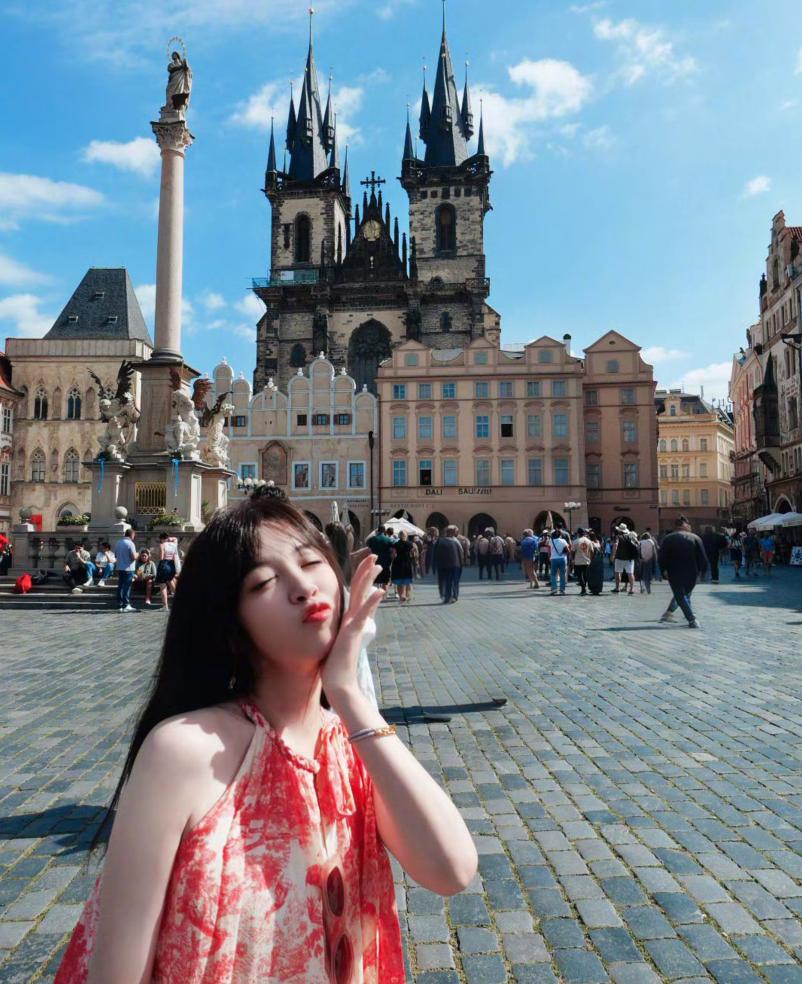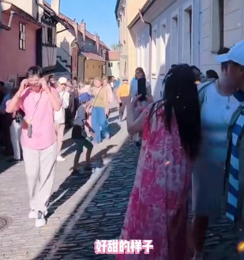 8月18日,又有网友在捷克布拉格偶遇了俞灏明和王晓晨,画面中,俞灏明穿着粉色短袖衬衫,王晓晨则穿着同色系长裙,两人身着情侣配色,十分醒目,王晓晨专注地拿着手机为俞灏明拍照,而俞灏明则轻松地摆着姿势,配合默契。