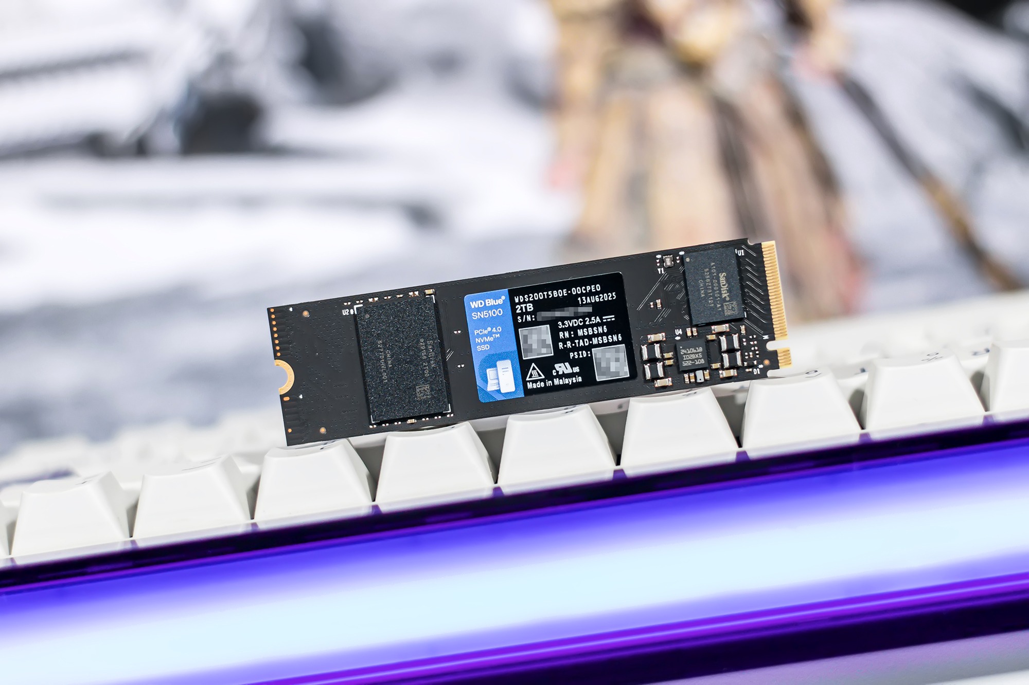 本人经常会拍摄4K超高清视频素材,然后将视频文件导出到电脑中进行编辑处理,无疑会占据不小的存储空间,还有游戏数据也不容忽视,动辄几十上百GB,重要数据往往无法轻易删除,电脑的存储空间便渐渐告急,面对一困这境让人不得不想办法给电脑扩容,作为数据存储盘,容量必须足够大,高速且稳定的读写性能,闪迪最新出品的 SN5100 2TB固态硬盘属于WD Blue系列最新一代产品,其采用PCIe4.0×4传输规格,顺序读取速度达到7100MB/s,接下来对固态硬盘进行多项测试,看看读写性能表现究竟如何。