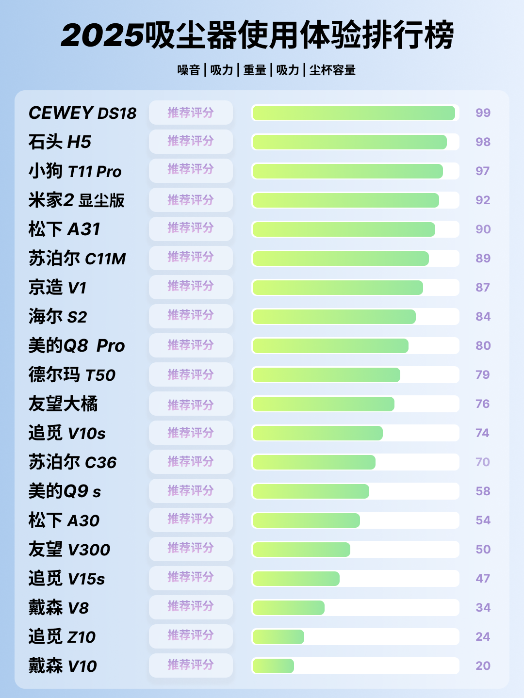 为了让你更直观了解目前2025年宠物吸尘器哪款好,下面先放一张2025年主流宠物吸尘器品牌天梯图。