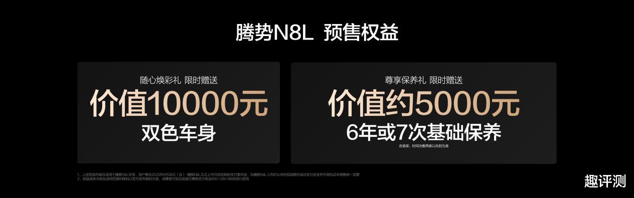 大六座安全豪华SUV腾势N8L正式开启预售,预售价31.98万起