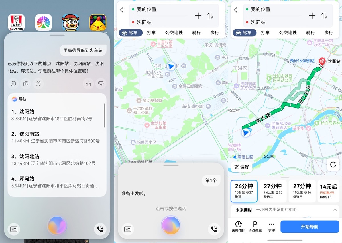 上周出门旅行,我就狠狠体验了一把它的方便。出门前,直接唤醒小艺说一句:用高德地图导航去火车站,小艺就能立刻听懂,确认目的地后,直接自动跳转到高德地图规划路线,一句话搞定。早晨赶时间或手里拎着东西,动动嘴皮子就行,省了手动操作的麻烦,简直是懒人福音。