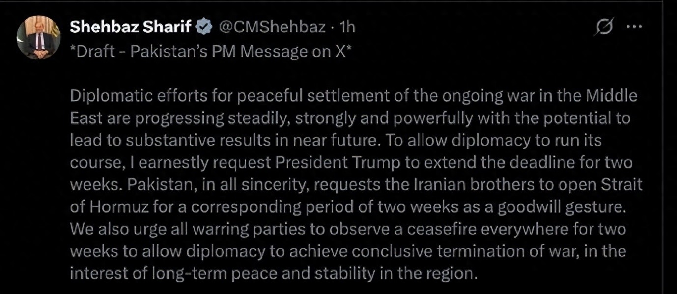 在特朗普TACO后,巴基斯坦总理发了个文,大意是感谢美伊双方给他这么大面子,并邀请双方于4月10日前往伊斯兰堡继续谈判。