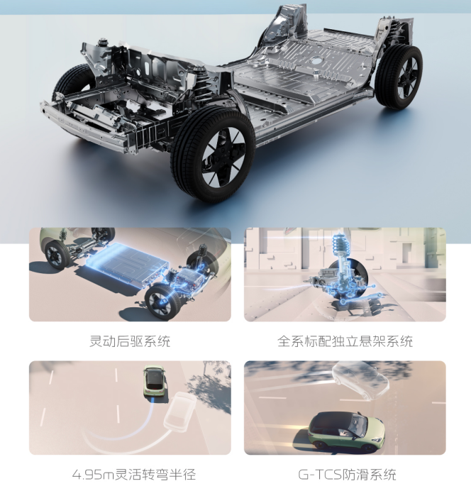 通勤灵活高效,4.95m超小转弯半径比同级短0.5米,老小区窄路掉头、商场紧凑车位都能“一把过”,新手也能轻松驾驭。前麦弗逊+后多连杆独立悬架组合,过减速带时能细腻过滤颠簸,60km/h过弯侧倾控制在3.5°以内,通勤路上既灵活又平稳。车身采用36处密封胶条+双层夹胶隔音玻璃,60km/h巡航时车内噪音≤62分贝,堵车时也能享受静谧空间,搭配50W无线快充,手机随时满电,通勤效率拉满。