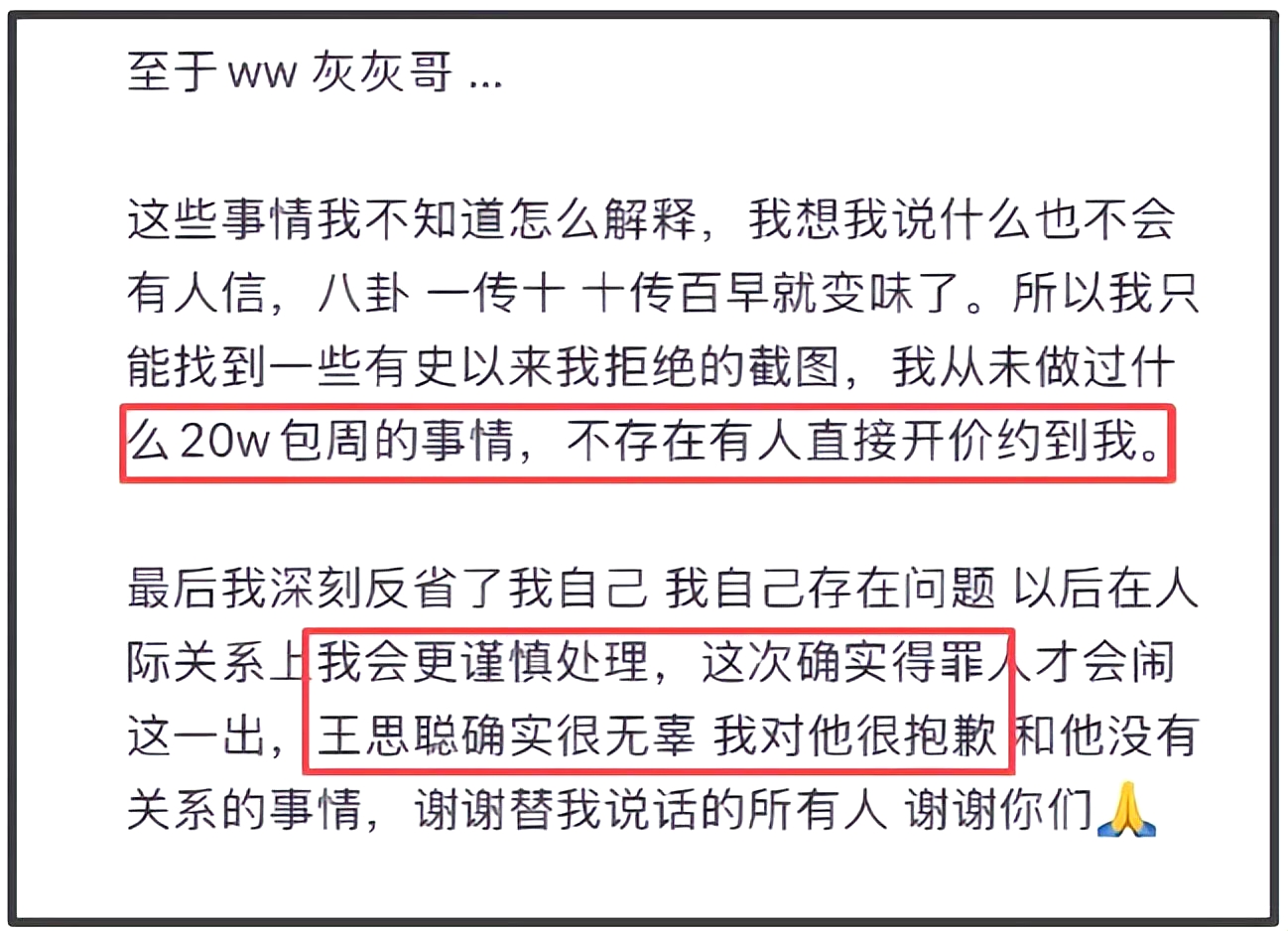 不到一小时,小李的账号涌入数万访客,评论区被「外围还装清高」「敢蹭王思聪胆子够大」等言论淹没。尽管她连夜晒出工作室营业执照与银行流水自证清白,称奢侈品来自合法收入,但在王思聪「有实锤但不想闹太大」的暗示下,质疑声浪有增无减。最终,不堪骚扰的小李在凌晨三点发布道歉长文,账号转为私密状态 —— 这场话语权的对决,从一开始就注定了胜负。