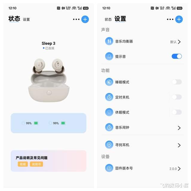 在助眠功能方面,Wedoking 三代睡眠耳机搭配了专属的 APP,功能丰富多样。睡眠模式、助眠音乐以及订制私人闹钟功能等多维度开发,只为给用户更舒心的睡眠体验。睡眠模式下,耳机能播放柔和的助眠音乐,引领用户进入深度睡眠。另外,APP 还具备定时关机功能,可搭配助眠音乐,让休息变得简单,定时关心用户的睡眠,避免睡眠被打扰。而 APP 耳机专属闹钟,还可以从助眠音乐自然过渡到清晨的音乐闹钟。
